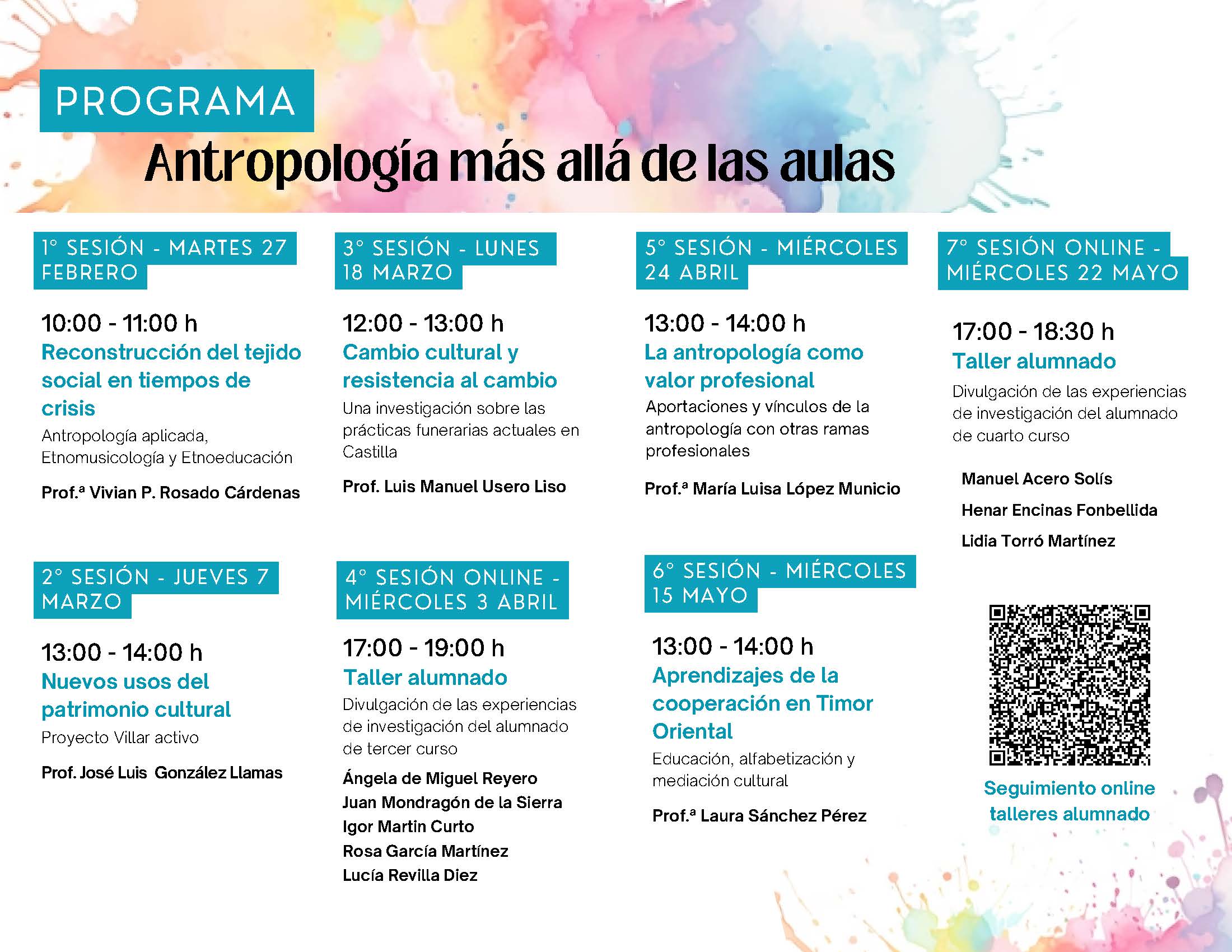 El seminario se lleva a cabo en el marco del PID ‘Aprendizajes y experiencias desde la Antropología: aplicación, profesionalización y visibilización del conocimiento antropológico’, subvencionado por el Vicerrectorado de Innovación Docente y Transformación Digital de la Universidad de Valladolid.