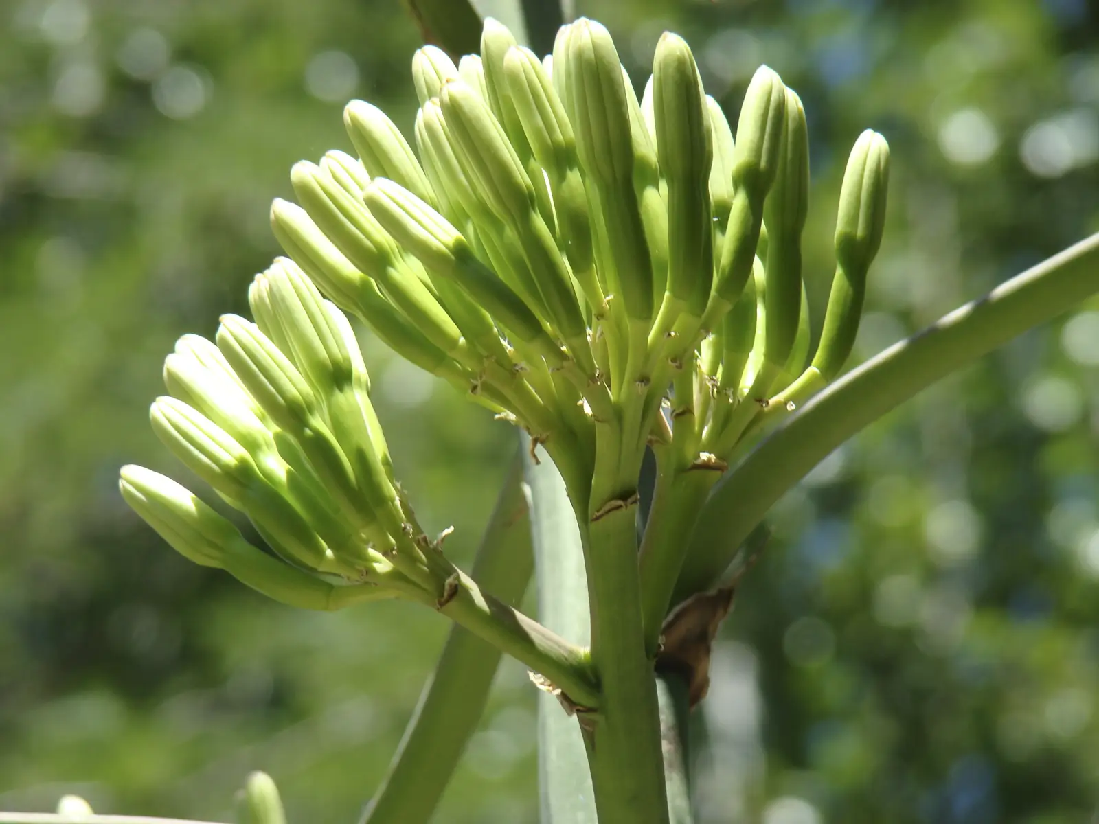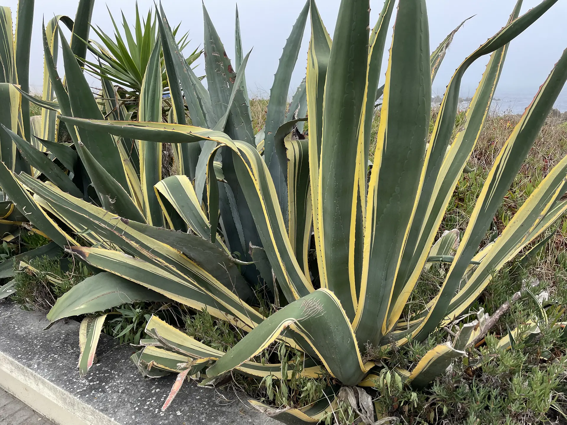 Planta herbácea, perennifolia sin tallo, con hojas grandes, carnosas y en roseta basal, de hasta 2 m, con bordes espinosos y una espina terminal. Verde glauco o variegado. Flores amarillas, agrupadas en una vara floral que puede superar los 5 metros. Florece una sola vez, al cabo de años, y luego muere. Frutos en cápsulas alargadas con semillas negras.