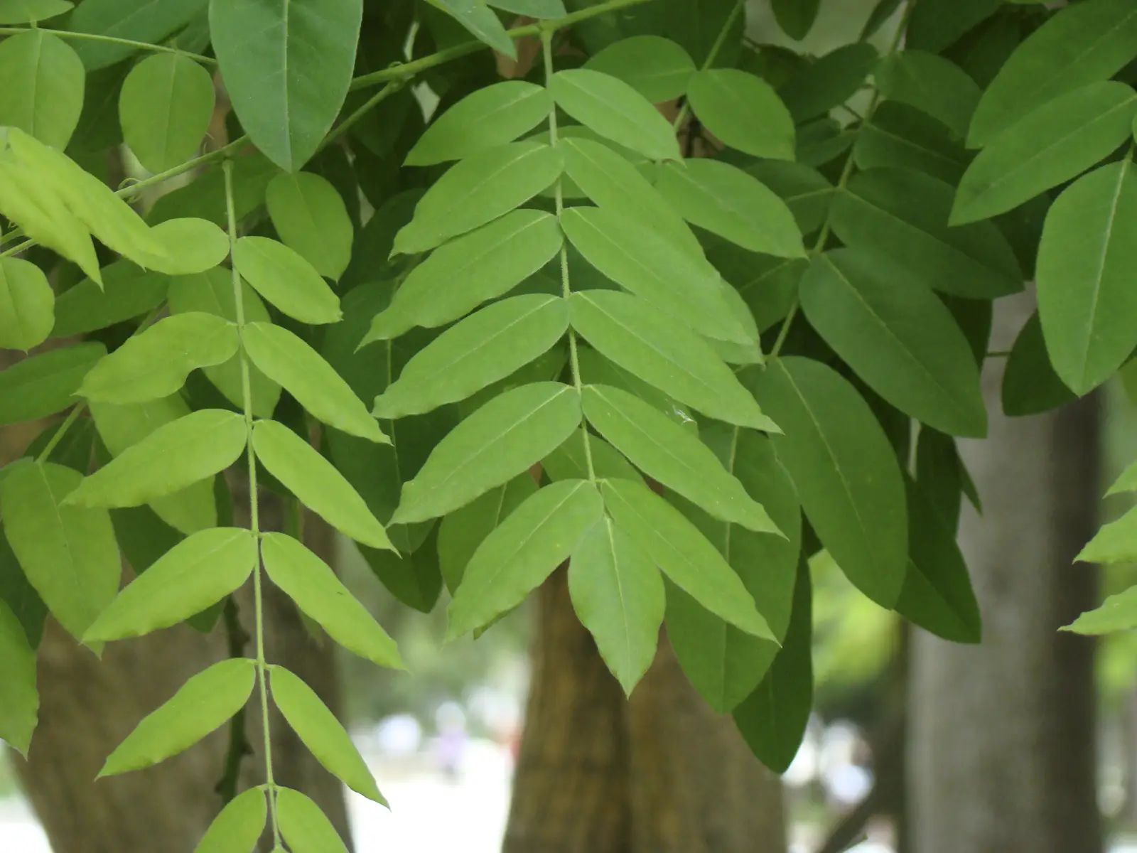 Árbol caducifolio con hojas opuestas, pinnadas, con foliolos más anchos que F. angustifolia, con dientes finos en el borde, envés peloso en el nervio medio. Yemas de color negro. Flores pequeñas, sin pétalos, en racimos, florecen antes de que se abran las hojas. Frutos en sámaras anchas, planas y aladas.