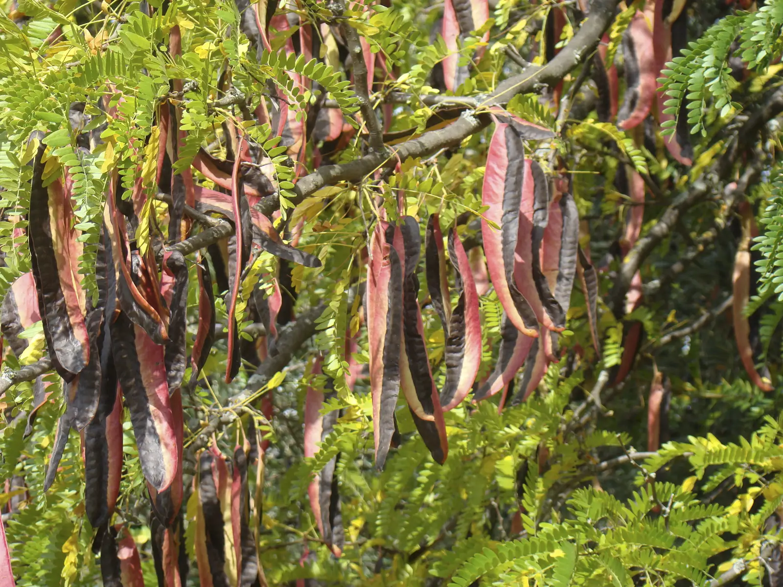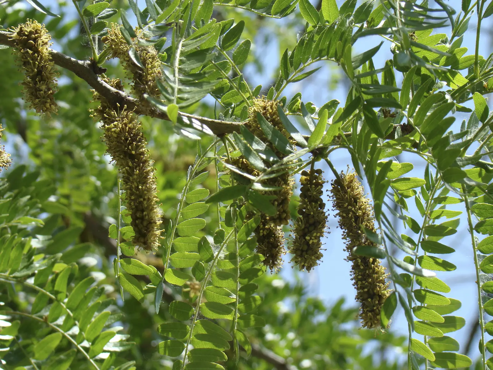 Árbol caducifolio de hojas alternas, pinnadas o bipinnadas, con foliolos pequeños y numerosos, de color verde claro. Flores poco vistosas, verdosas o blancas, en racimos densos, que florecen a finales de primavera. Frutos en legumbres largas, planas y marrones, que contienen varias semillas duras.