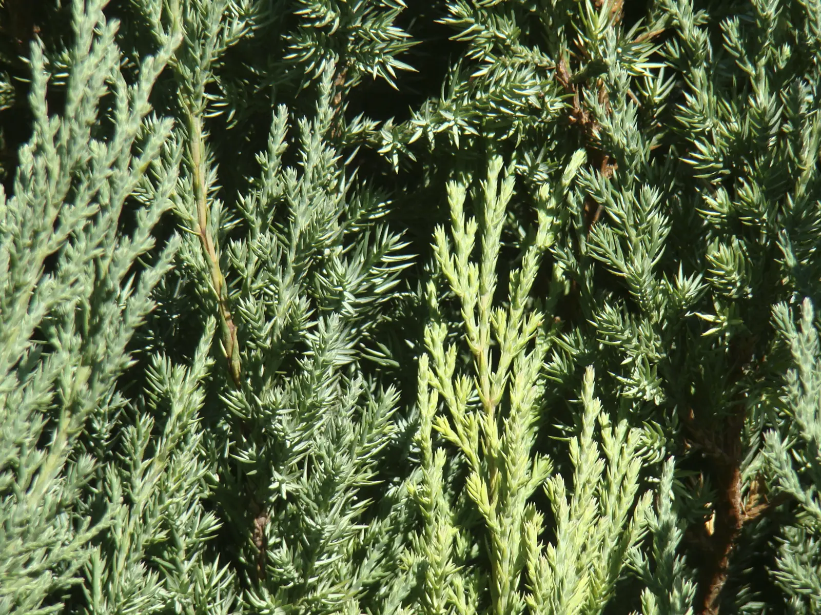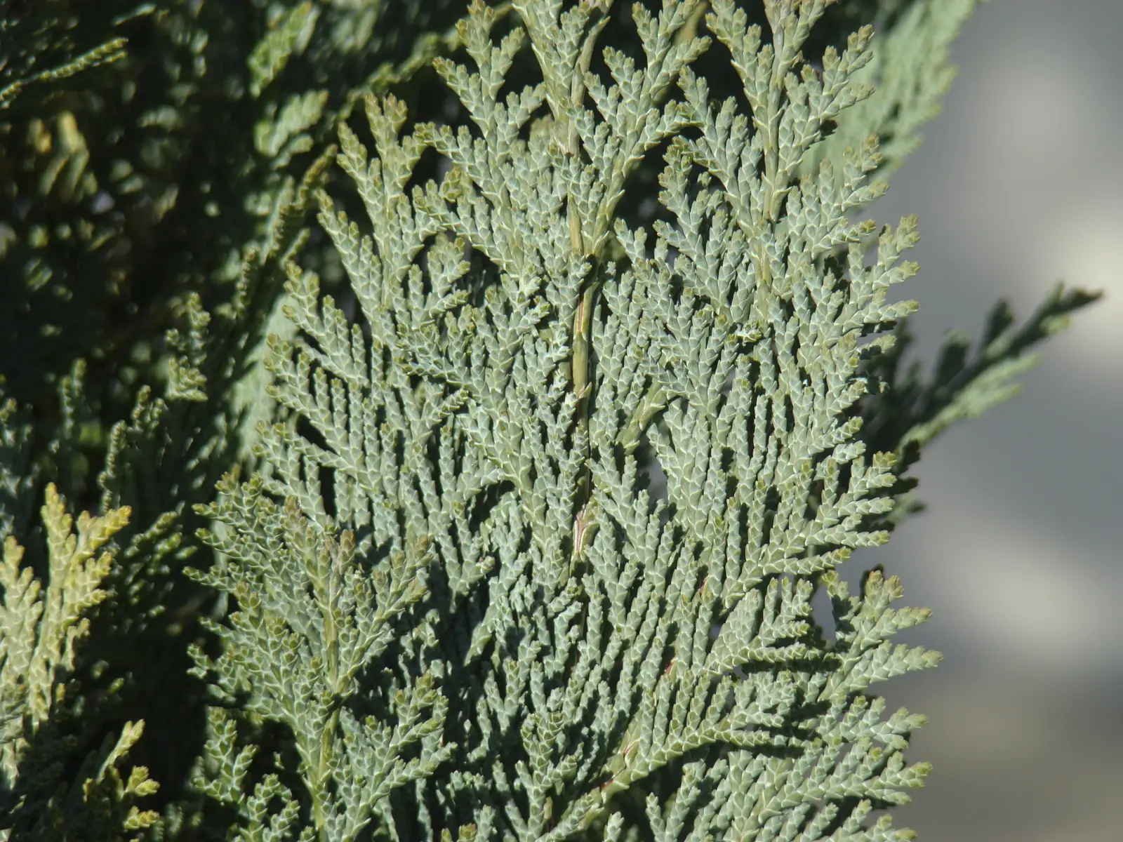 árbol perennifolio de hojas escamosas y muy densas, con un característico color azul grisáceo (glauco). Planta monoica con flores reunidas en conos, los masculinos amarillos y los femeninos azulados, poco llamativos, florecen a finales de primavera. Semillas reunidas en estructuras globosas denominadas arcéstidas, de color azul con un recubrimiento ceroso, que tardan entre 18 y 24 meses en madurar; semillas dispersadas por aves.