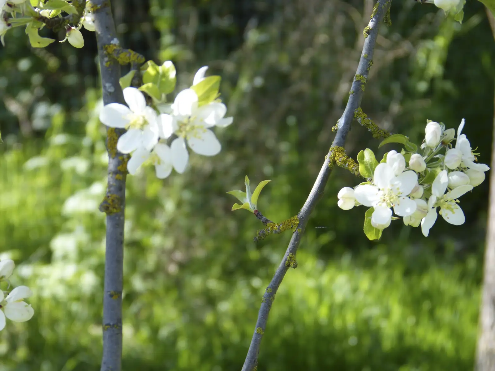 Árbol caducifolio de hojas alternas, ovadas con borde dentado y pelillos en el envés. Flores blancas o rosadas, agrupadas en racimos, floración en primavera. Frutos de tipo pomo, pequeñas, ácidas y duras, usualmente no son consumidas directamente.