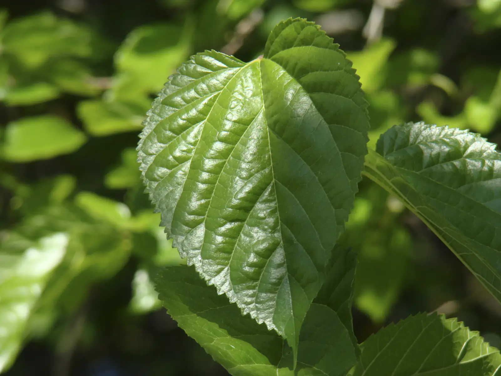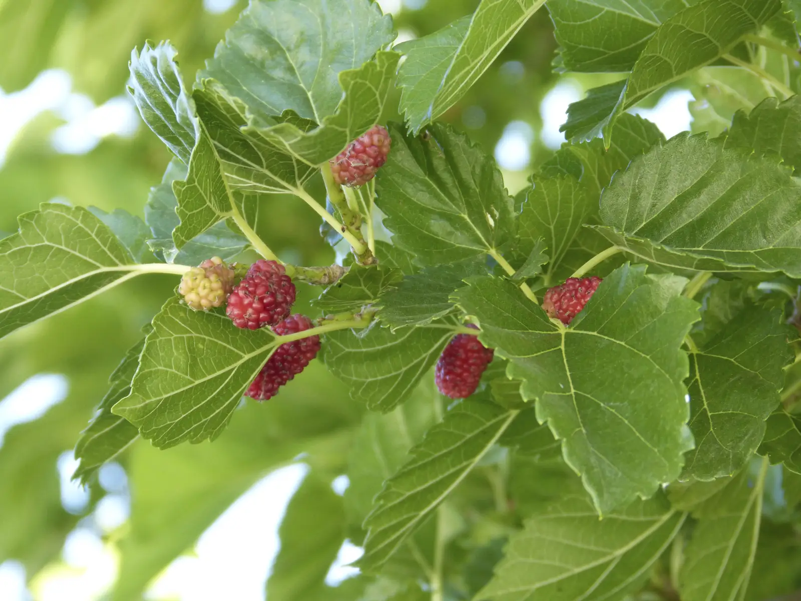 Árbol caducifolio que proporciona buena sombra. Hojas simples, acorazonadas, con los bordes dentados, gruesas, mates y rugosas por ambas caras, con los nervios secundarios muy marcados. Las flores son muy menudas. Los frutos, las moras, son negruzcos de sabor agridulce muy sabroso, con un cabillo muy corto que dificulta se recolección.