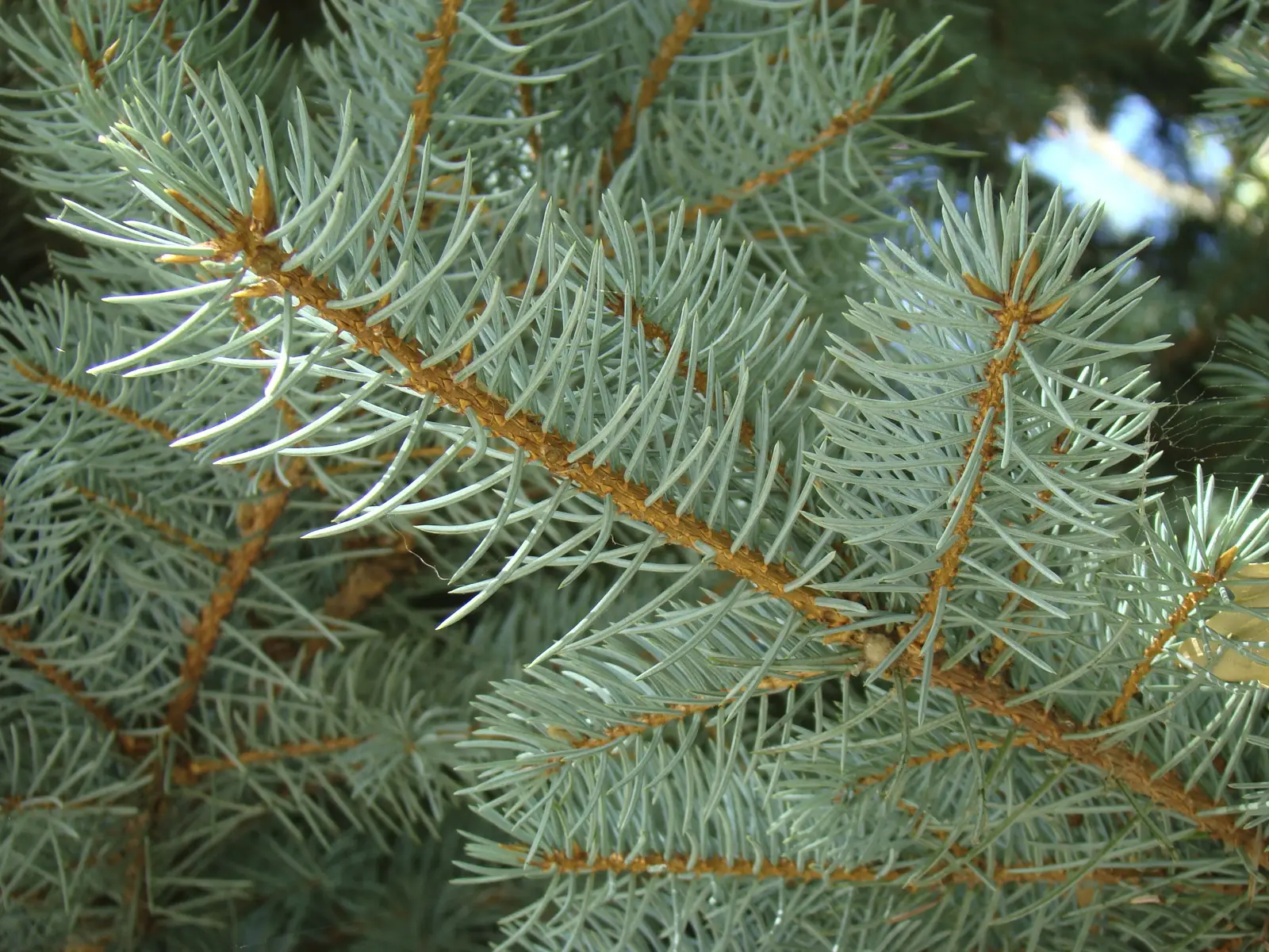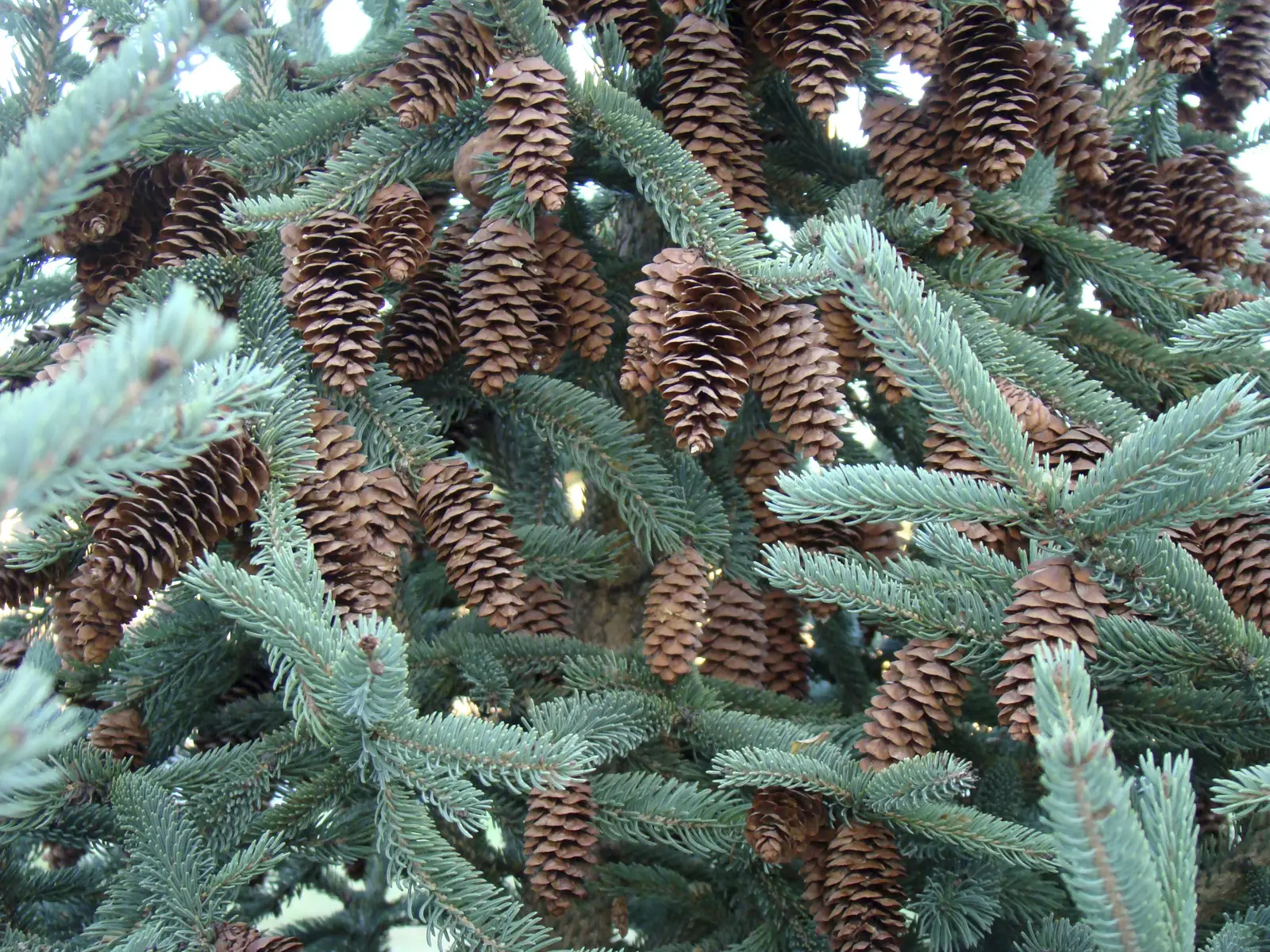 Árbol perennifolio de porte piramidal. Acículas de 15 mm, verde azuladas, delgadas, curvadas, con el ápice agudo. Despiden un olor desagradable al frotarlas. Conos masculinos rojizos y piñas cilíndricas, colgantes, de color pardo y de unos 6 cm. de longitud