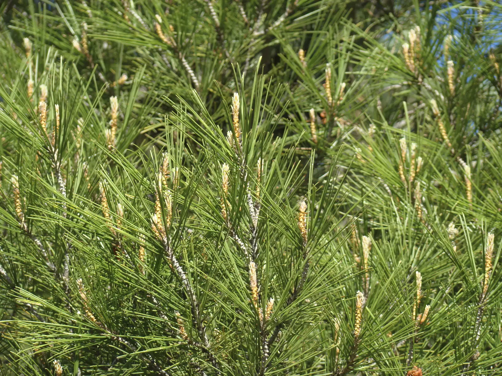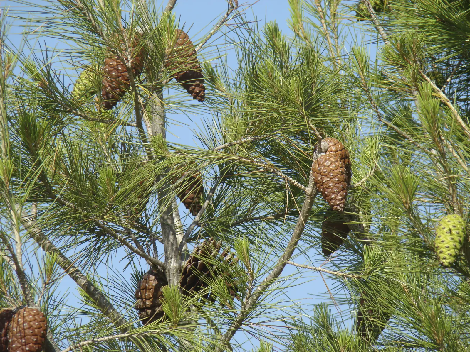 Árbol perennifolio poco robusto y de crecimiento rápido. Las hojas, acículas, son finas y flexibles de color verde claro y una longitud entre 6 y 15 cm. Las flores masculinas y femeninas crecen en el mismo pie. Las femeninas son ovoides de color rosa violeta y las masculinas son alargadas y de color amarillo dorado Los frutos, piñas, están formadas por escamas con un escudete y se mantienen unidas durante varios años a las ramas mediante un grueso pedúnculo.