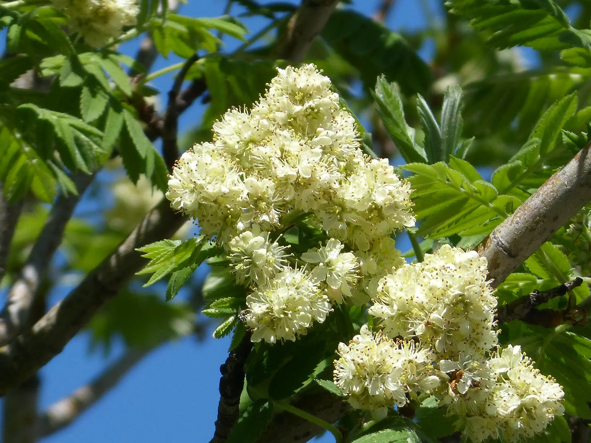 Árbol caducifolio de tronco recto y copa alargada de hasta 12 m. de altura. Hojas compuestas, con 5 a 9 pares de hojuelas aserradas en los bordes, verdes por el haz y blanquecinas por el envés. En el otoño toman un color que va del amarillo al anaranjado. Inflorescencias en racimos con pequeñas flores blancas. Los frutos, serbas o jerbas, son pomos como perillos que contienen hasta tres semillas aplanadas.